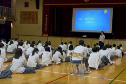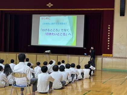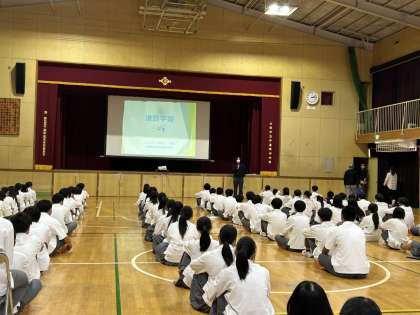 まず初めに、進路担当教員から中学校卒業後の進路の種類や、高校の種類について説明がありました。
