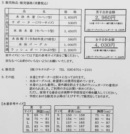 明日6月5日(木)と明後日6月6日(金)の2日間は、水泳用品の校内販売日です。登校時に販売業者が販売を行っておりますので、購入が必要なご家庭につきましてはお買い求めください。