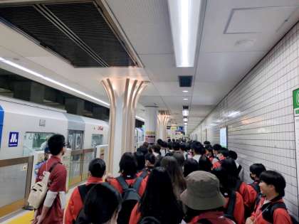 専用列車に乗り込み、大阪・関西万博会場がある夢洲駅に向かいます。