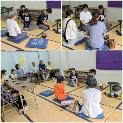 東井高野連合地域祭りに参加していた法被姿の校長や、教頭、PTA代表さんも昼休憩時にお客様として来てくれました。卒業した元茶道部員もお手伝いにきてくれ、大変助かりました。