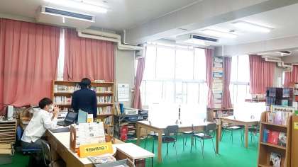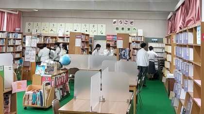 本日の当番には、3年生の生徒がきてくれていました。図書室をよく利用してくれる生徒を中心に、多くの生徒が来館し、一緒に本を選んだり、読んだりしていました。