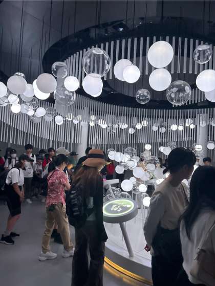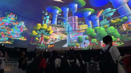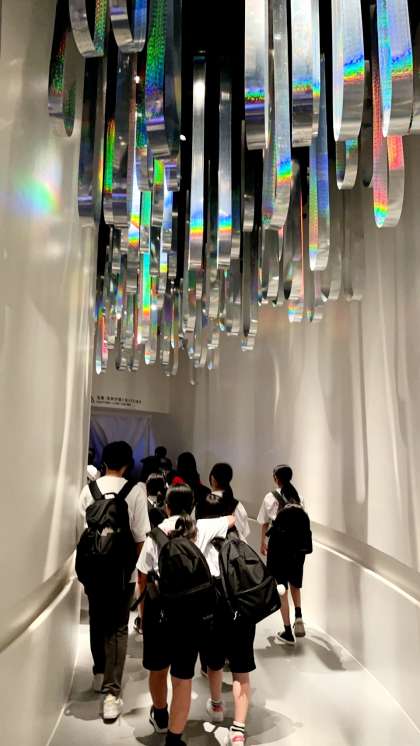 1年生が見学しているシンガポールパビリオンでは、「ゆめ・つなぐ・みらい(Where Dreams take Shape)」というテーマで、来場者が自身の願いを書き、その願いを巨大なスクリーンに写し出すことができます。代表生徒2名の願い事がスクリーンに写し出されました。