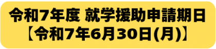令和7年度就学援助の申請期限は【令和7年6月30日(月)】です。