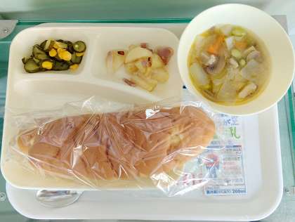本日の給食はパン食です。