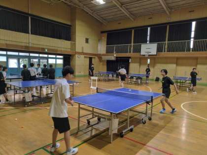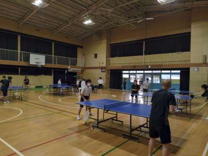 体育館で卓球部が練習を頑張っています。