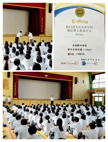 暑い日が続きますが、終業式まで全力で取り組み、楽しく仲の良い井高野中学校にしてください。