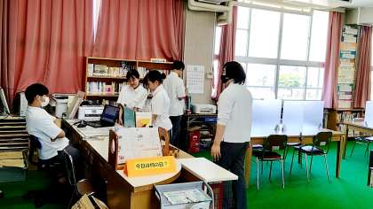 本日の当番には、1年生の図書委員が来てくれていました。当番が来るまでの間、有志の図書委員も手伝いをしてくれていました。来館した生徒は、小説や参考書、資格の本など、様々な本を借りていました。