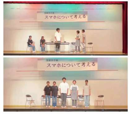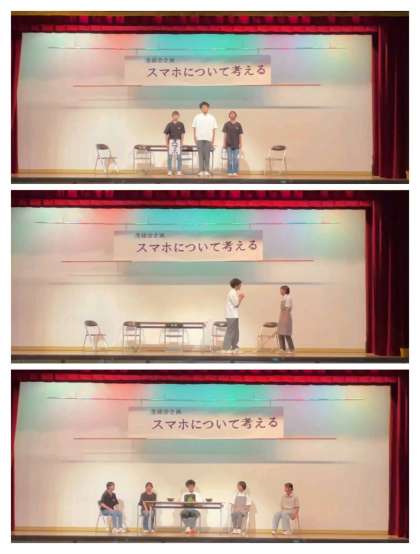 昨日4時間目に、生徒会生徒がスマートフォン・タブレット利用について考える取り組みとして、道徳劇「自まんのお兄ちゃんだったのに」を演じました。昨年度生徒会メンバーがスマホサミットに出席したことで、自校でも何かできることはないかと考え、企画されました。