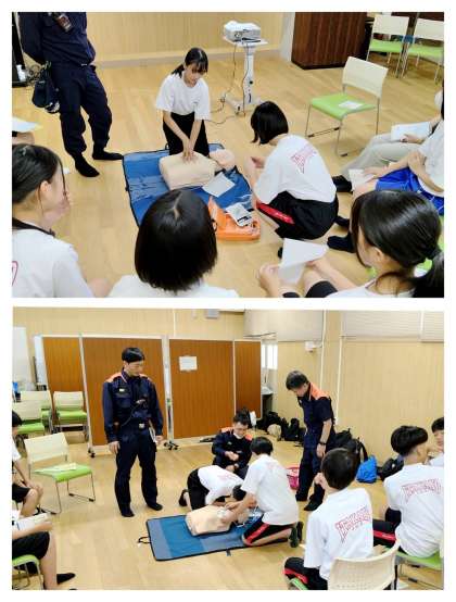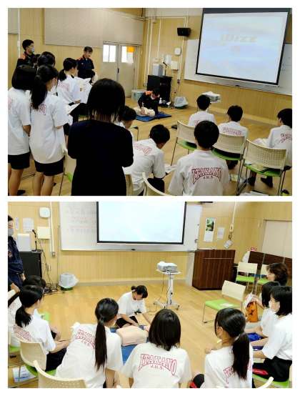 本日放課後に、東淀川消防署の方に講師としてお越しいただき、前期衛生委員を対象に、普通救命救急講習会を実施しました。