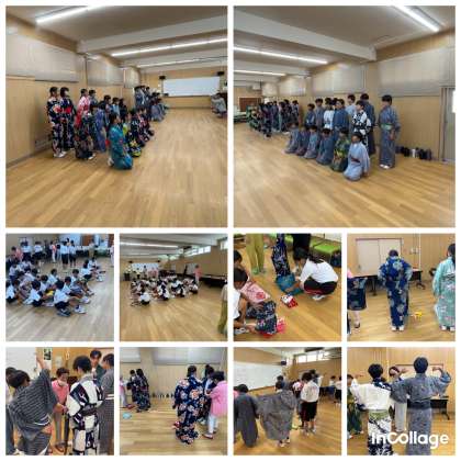 浴衣が初めての子も着たことがある子も、民謡の先生方に着付けを教わりながら、着ていました。