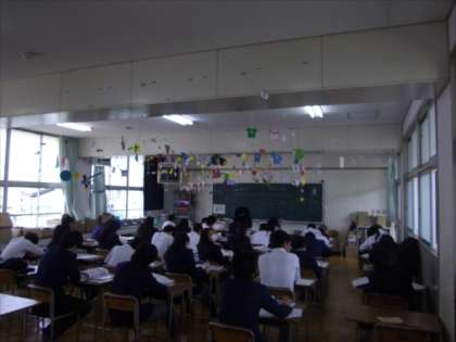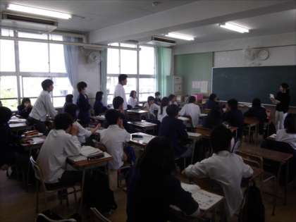 5月14日(土)本年度第1回目の土曜授業を実施しました。1、2限目は、保護者の方に各教科の授業を参観してもらいました。3年美術科の授業は「構成美」の導入を行いました。次回の授業からデッサン画を書いていきます。2年英語科の授業は、英単語のフラッシュカードゲームを行いました。早く答えて、席に座れるように集中しました。