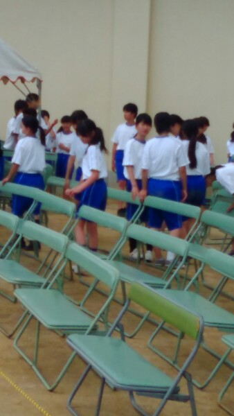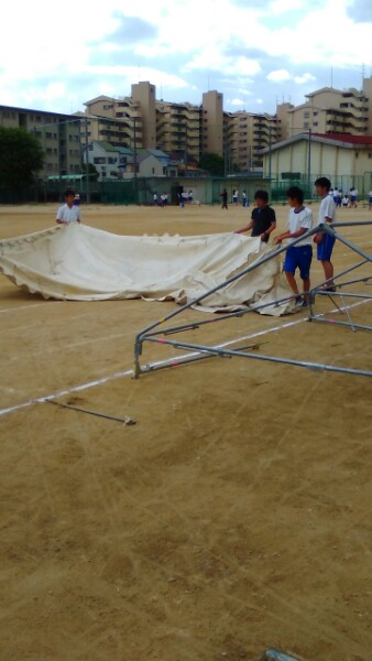 明日の体育大会の本番のために、委員会や部活動の生徒が準備をしています。