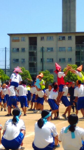 2年生は最初に行進で交差をするなど集団行動を行った後、学年種目として騎馬戦を行いました。