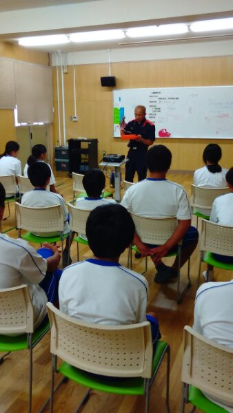15日(金)1時30分から普通救命救急講習会を多目的室で実施しました。東淀川消防署の救急隊員の方に来ていただき、AEDの使い方や心肺蘇生法などを丁寧に教えていただきました。