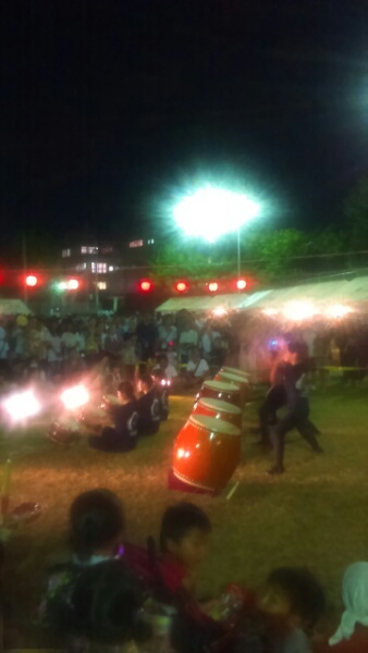 昨日は、東井高野納涼大会が井高野公園で行われました。井高野中学校から和太鼓部が参加して、日ごろの練習の成果を披露することができました。多くのの観客のなか、堂々とした力強い演奏で和太鼓の音を響かせ、地域の人からたくさんの拍手をいただきました。