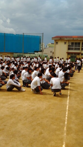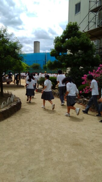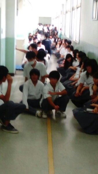 地震・津波発生を想定した避難訓練を実施しました。地震の揺れが収まった後、グランドに避難、点呼完了後、大津波警報発令のため3・4階に避難しました。