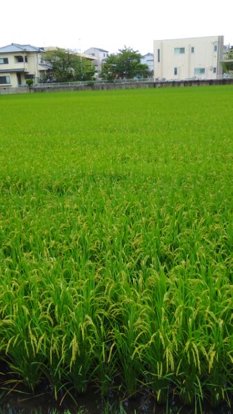 台風も過ぎ去り、5日ぶりに学校が再開しました。地下鉄井高野駅近くの田んぼの稲穂も実ってきました。脇に彼岸花が咲いています。