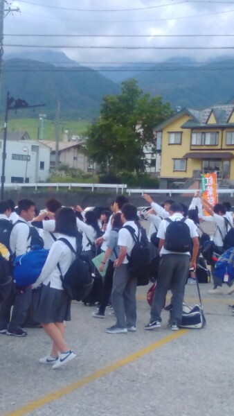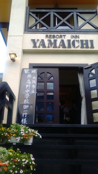 栂池に到着しました。5つのペンションに分かれて分宿です。夕焼けもでています。