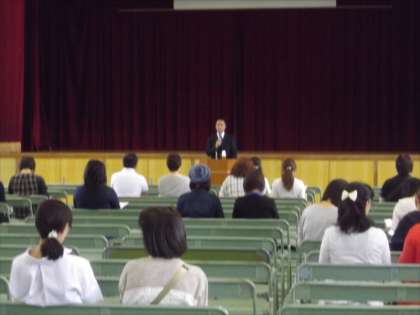 進路講演会の後。引き続き保護者対象の進路説明会を実施し、進路主事から丁寧な説明がありました。同時に11時00分からは、小学校6年生・保護者対象に学校説明会(学校公開)を実施しました。来ていただいたみなさん、ありがとうございました。