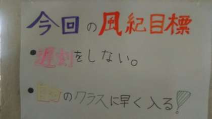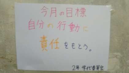 2年生の廊下に、学級委員会と風紀委員会の目標が掲げてあります。