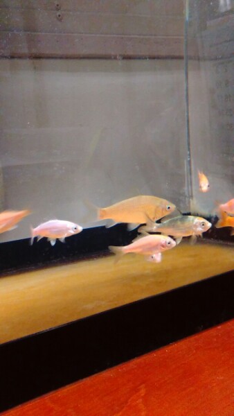 春に卵から孵った鯉を管理作業員室の水槽にいれています。大きいのは10センチあまり、小さいものは3センチほどまで成長しました。もう少し大きくなると中庭の池に還ります。