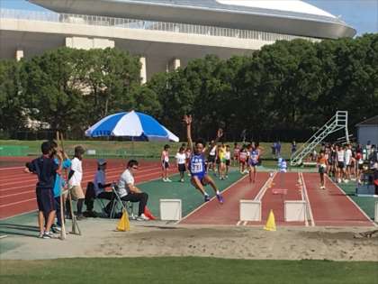 8日(土)・9日(日)の大阪府大会は、大阪市代表として11人が出場しました。苦戦の連続で、砲丸投げの3年男子があと14cm、三段跳びの3年男子があと12cmという僅差で決勝には進めませんでした。110mハードルの3年男子も準決勝にはいけましたが、決勝進出はできませんでした。