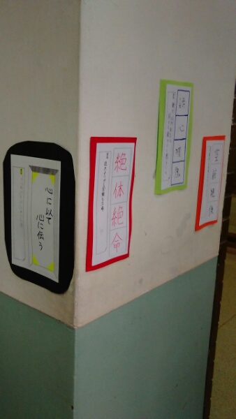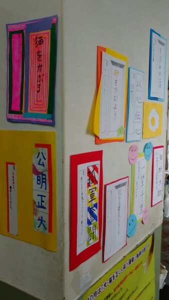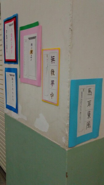 慣用句・ことわざ・四字熟語の張り出しが増えています。学校中のあちらこちらで見られます。