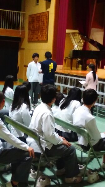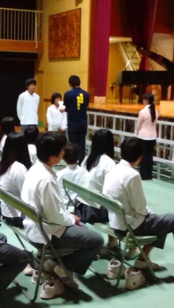 どのクラスも素晴らしい歌声を披露してくれました。また鑑賞の態度もしっかりしていました。コンクールの審査結果は、大接戦でしたが、最優秀クラスは、1組。優秀クラスは、3組に決定しました。1組は、文化祭当日(28日)、全校の前で発表します。また、課題曲は学年全員で合唱します。
