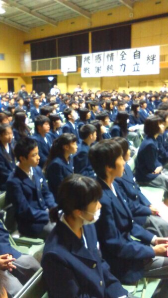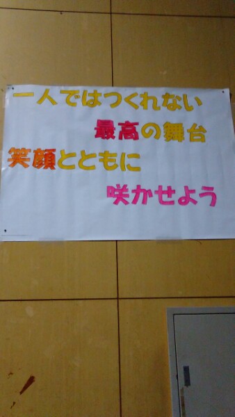 今年の文化祭のスローガンは「一人ではつくれない最高の舞台 笑顔とともに咲かせよう」です。文化祭実行委員長のあいさつで始まりました。