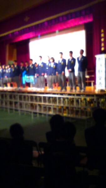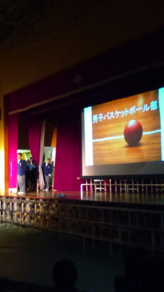 部活動報告です。文化部、運動部すべての部の部長から、1年間の活動から学んだことやこれからの抱負、後輩への思いを語りました。