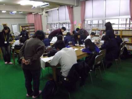 11月9日(水)元気アップ学習会を開催しました。1年生が調べ学習に来ていたこともあり、20名を超える生徒が参加していました。ボランティアの方6名と教員も3〜4名が来ており充実した学習会になりました。