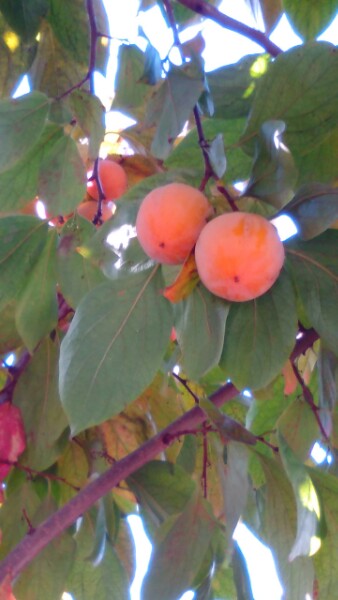 体育館の裏にたくさんの渋柿が実っていました。収穫です。