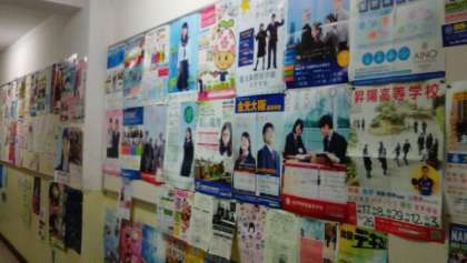 今週は午後、3年生の進路懇談を行っています。写真は2階に掲示されている高等学校や高等専修学校のポスターです。