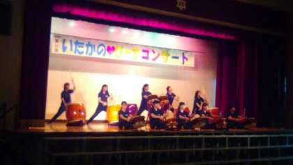 4日(日)「2016いたかの ぴーすコンサート」が開かれました。井高野中学校からは、太鼓部と吹奏楽部が出演しました。太鼓部は「瞬破(しゅんは)」、「響(ひびき)」の2曲を、吹奏楽部は「学園天国」、「風になりたい」、「恋人たちのクリスマス」の3曲を堂々と演奏し、たくさんの拍手をいただきました。