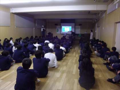 12月8日(木)1限目、1年生は歯科校医さんに来ていただき「歯と口の健康教室」を行いました。咬合力計(こうごりょくけい)を使用して咬む力を測定しました。咬む力と運動能力、学習能力は深い関係があるということを教えていただきました。普段からしっかり歯を磨き大切にしておきましょう!