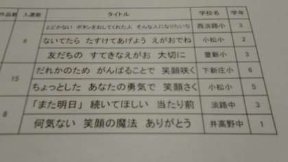 昨日(21日)、人権優秀作文・優秀標語の表彰式が東淀川区民ホールで行われました。井高野中学校から1年生の男子生徒が優秀標語に選ばれ、金谷区長さんから表彰状を手渡されました。標語は「何気ない 笑顔の魔法 ありがとう」です。おめでとうございます。