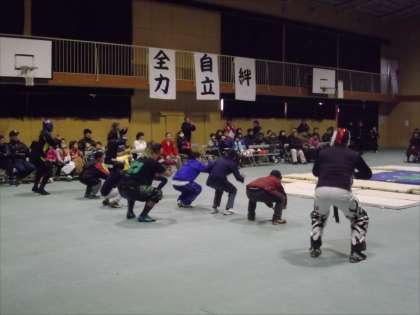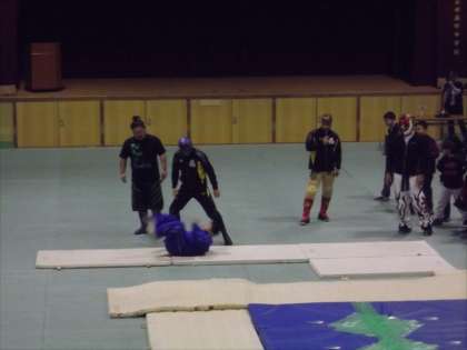 14日(土)14:00より、井高野小学校、東井高野小学校、井高野中学校三校合同のPTA人権講演会が行われました。雪がちらほら舞う寒い中、約150名もの人が井高野中学校体育館に来てくれて館内は盛り上がりました。来てくれた4人のプロレスラーは、最初に小中学生と一緒にトレーニングをしてくれました。その後、日本こども体育協会の理事長より人権講演をしていただきました。
