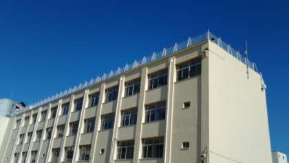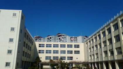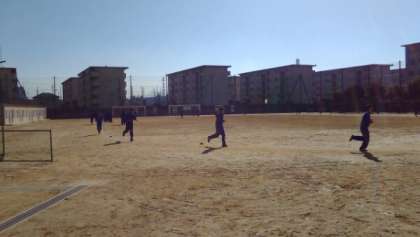 今日は青空が広がっています。8月から行ってきた校舎の壁面改修工事が完了しました。真っ青な空と明るい太陽に校舎が映えています。グランドでは、3年生男子が体育で長距離走を行っています。