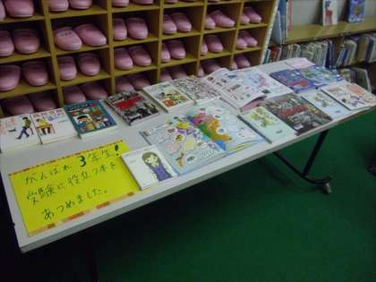 先日の「走れメロス」コーナーに変わって、「3年生の受験用」コーナーが新設されました。3年生は、よいよ明日(10日)から私学入試が始まります。それが終われば公立の入学試験となります。3年生のみなさんは、まだまだこれから頑張り時です。自分の進路選択に向けて図書室をしっかり活用しましょう。