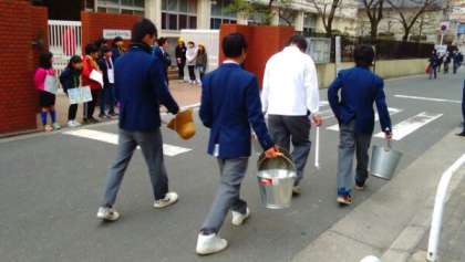 今週は、あいさつ運動週間です。井高野小学校、東井高野小学校からも児童が校門に来てくれ、一緒に挨拶をしています。中学生も両小学校に出向いています。朝から「お早うございます」という大きな声が響き渡りました。気持ちがいいものです。サッカー部やバレー部の生徒も参加しました。また、野球部の生徒はバケツとゴミばさみを手に、学校周辺の清掃活動をしています。
