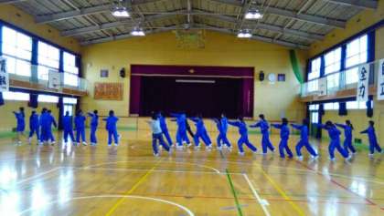 1年生の体育の時間です。女子はダンスの練習をしています。