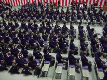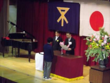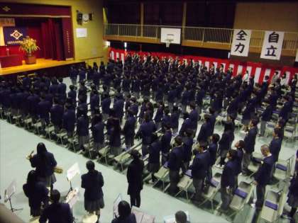 卒業証書授与式が厳粛な雰囲気の中スタートしました。国歌、大阪市歌、校歌斉唱、学事報告の後、一人ひとりに卒業証書が手渡されました。