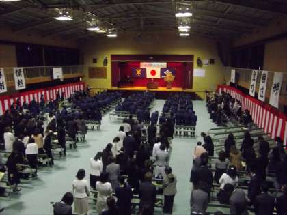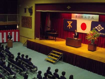 国歌斉唱、大阪市歌斉唱の後、学校長式辞、PTA会長祝辞、来賓紹介と続き、たくさんの人から、お祝いの言葉をいただきました。後から見守ってくれている保護者も含め、たくさんの人から祝福され、いよいよ中学校生活のスタートです。