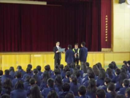 式に先立って、先日行われた男子バスケットボール部のブロック1年生大会優勝の表彰も行いました。