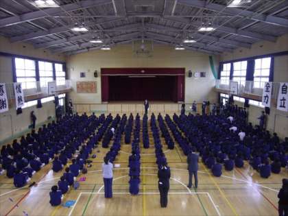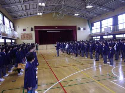 対面式は、生徒会の進行で行われ、在校生も新入生も互いに力を合わせ、井高野中学校を「友多き、夢多き、幸多き」学校にしていくことを確認しました。