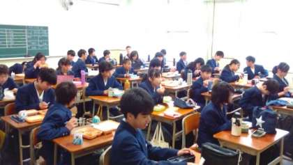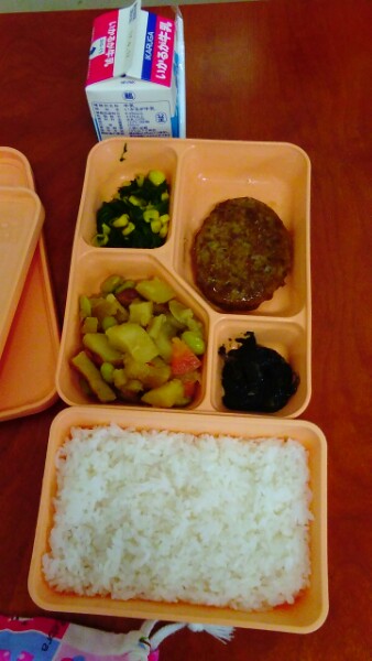 1年生のみ今日から昼食です。今年度は家から持ってくるお弁当とデリバリー方式の昼食弁当との選択制になっています。
