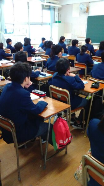 今日から授業が始まりました。1年間、目標を持ってしっかりと学習しましょう。写真は、1年2組の理科、1年3組の数学の様子です。