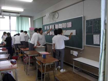 12日(金)6限目の授業の様子です。1年生は一泊移住のバスの席決めや体育大会の種目決め、2年生は道徳、3年生は体育大会の学級旗や種目決めを行いました。