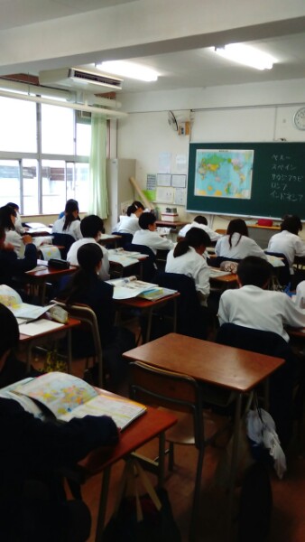 上から、1年1組社会、1年2組理科、1年3組国語の様子です。