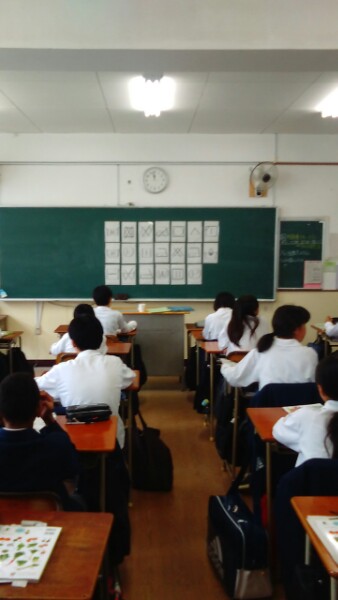 1年生の家庭科は「衣生活の自立」という単元で、衣服の取り扱い絵表示について学習しています。ゲームをしながら、たくさんの絵表示を覚えました。洗濯名人になれますね。